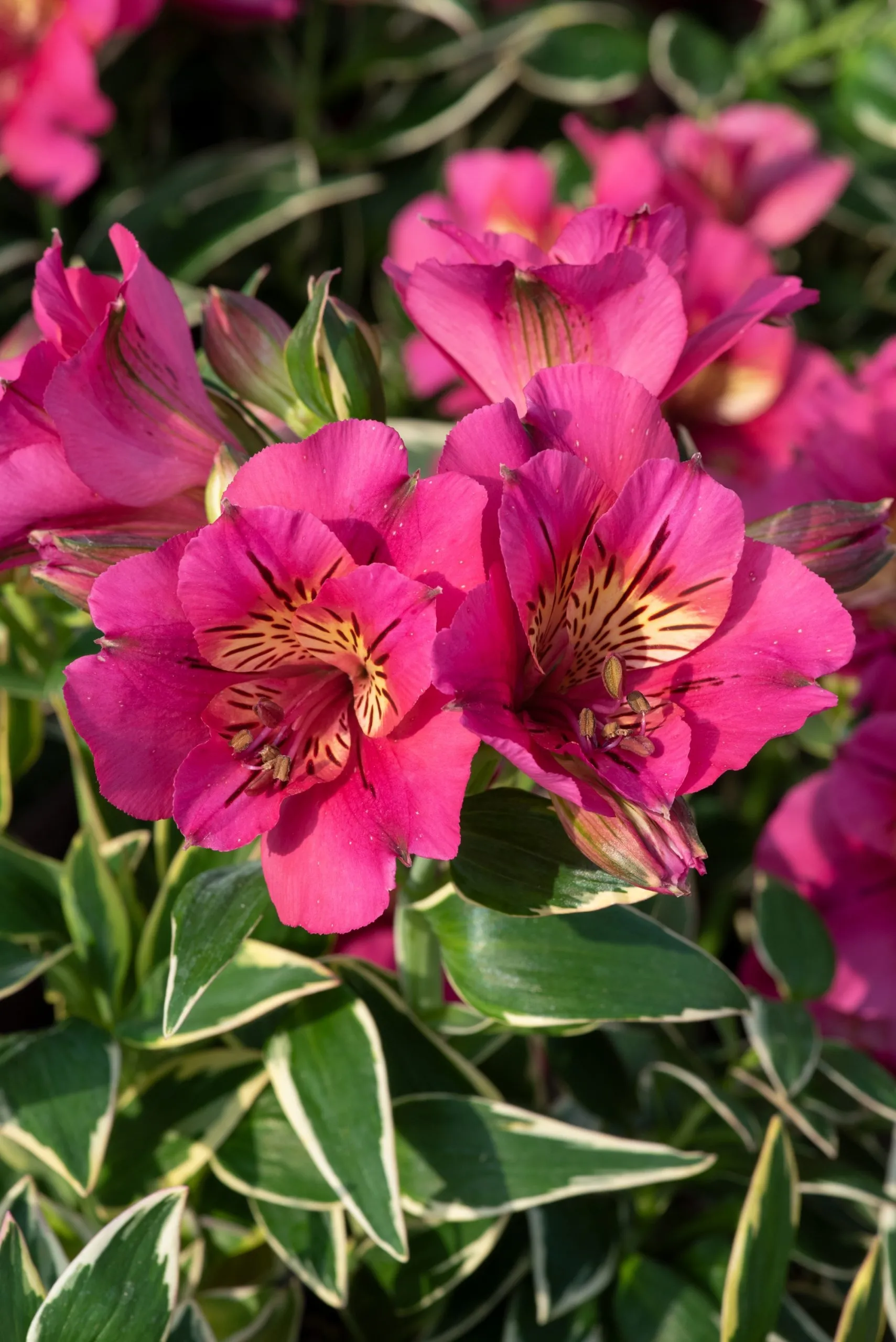Alstremeria 'River Valley' to piękna roślina wieloletnia, ceniona za swoje eleganckie kwiaty i długotrwałe kwitnienie. Charakteryzuje się żywymi, intensywnie różowo-czerwonymi kwiatami z żółtymi i białymi akcentami, które tworzą wyjątkowy kontrast i przyciągają wzrok. Jest idealnym wyborem do ogrodów, rabat i kompozycji kwiatowych, a także jako roślina cięta do bukietów.