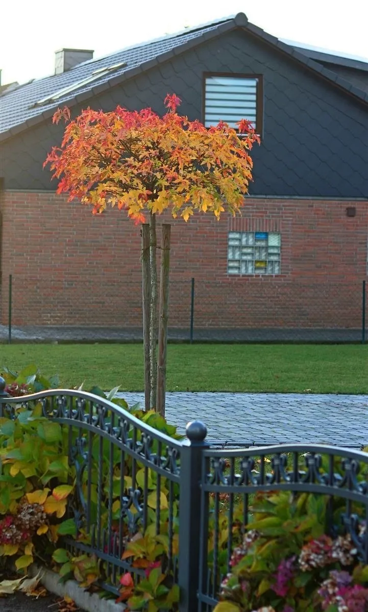 Podsumowanie: Ambrowiec balsamiczny na pniu to doskonały wybór do małych ogrodów, reprezentacyjnych rabat i miejskich nasadzeń, zachwycający efektowną kolorystyką liści i zwartą, elegancką formą.