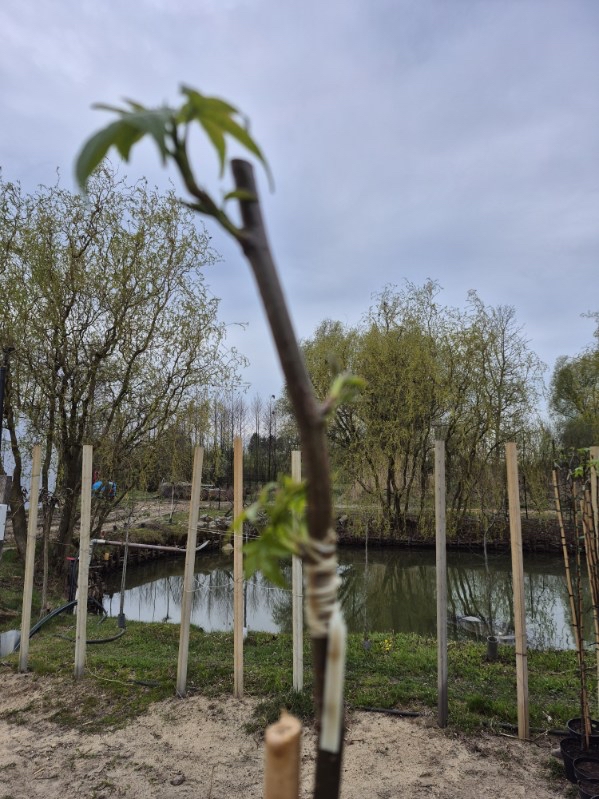 Oferowany egzemplarz to sadzonka świeżo szczepiona na pniu. Pierwszych, spektakularnych zmian kolorystycznych możesz spodziewać się już w pierwszym sezonie po posadzeniu. Ponieważ tkanki zraza i podkładki są w fazie intensywnego zrastania, roślina wymaga odpowiedniego traktowania. Złota zasada pielęgnacji świeżych szczepień to absolutny zakaz usuwania folii, gumek lub taśm wiążących miejsce szczepienia – zabezpieczenia te muszą pozostać na roślinie co najmniej przez pierwszy pełny rok, aż do całkowitego zabliźnienia się ran. Zbyt wczesne ich usunięcie lub obluzowanie może skutkować odrzuceniem korony lub jej wyłamaniem przez wiatr.