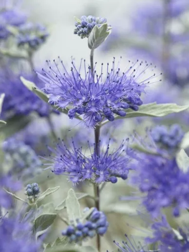 Barbula klandońska 'Sterling Silver' to dekoracyjny, miododajny krzew o srebrzystych liściach i intensywnie niebieskich kwiatach. Jest ceniona za swoją odporność, łatwość uprawy i długi okres kwitnienia, który trwa od lata do jesieni.