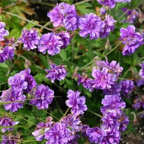 Bodziszek himalajski 'Plenum' (Geranium himalayense 'Plenum') to wieloletnia bylina o zwartym pokroju i niezwykle dekoracyjnych, pełnych, fioletowo-niebieskich kwiatach. Jest ceniony za długie kwitnienie i odporność na trudne warunki.