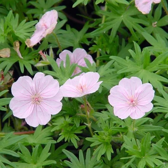 Bodziszek krwisty 'Striatum' (Geranium sanguineum 'Striatum') to niska, zwarta bylina o delikatnych, jasnoróżowych kwiatach z ciemniejszym unerwieniem. Jest ceniona za długie i obfite kwitnienie oraz odporność na trudne warunki.