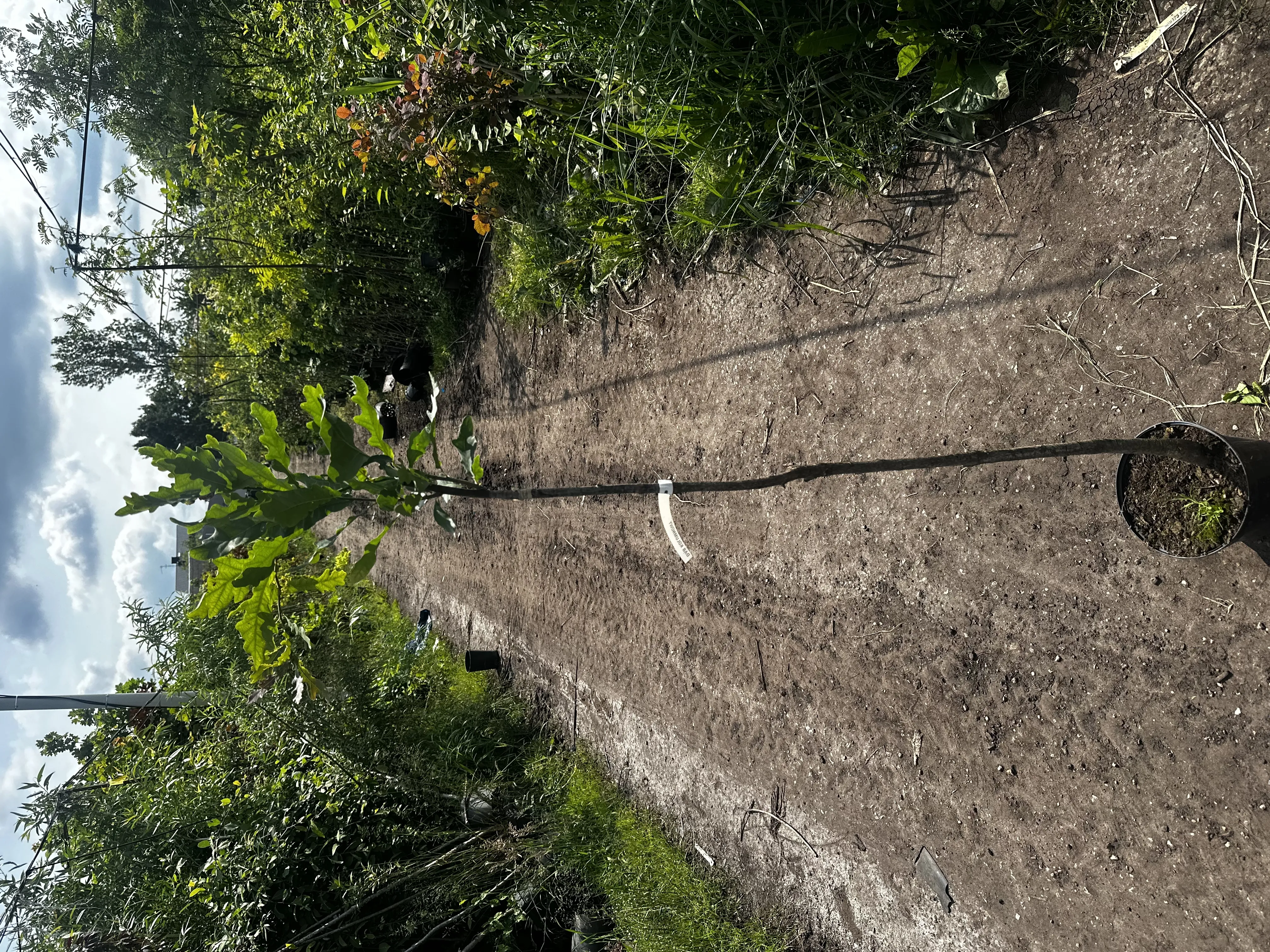 4. Ważne: roślina ma być na środku wykopanego dołka oraz ziemia ma być delikatnie ubita wokół pnia drzewka/krzaczka.