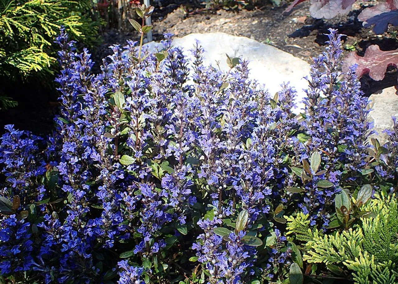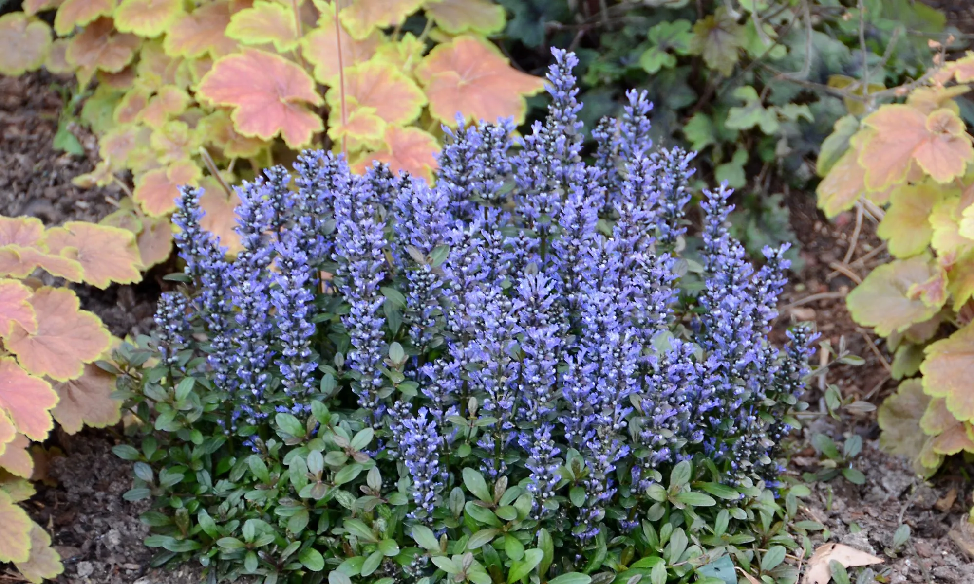 Dąbrówka rozłogowa (Ajuga reptans) to niska, ekspansywna bylina zadarniająca, ceniona za ozdobne liście i intensywnie niebieskie kwiaty. Tworzy gęste dywany, idealne do pokrywania wolnych przestrzeni w ogrodzie.