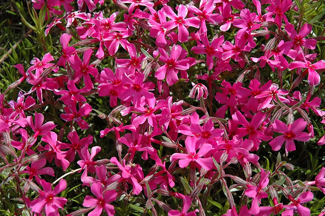 Floks szydlasty 'Scarlet Flame' (Phlox subulata 'Scarlet Flame') to niska, płożąca bylina o intensywnie różowych kwiatach z ciemniejszym środkiem. Jest niezastąpionym elementem wiosennych rabat, skalniaków i obwódek.