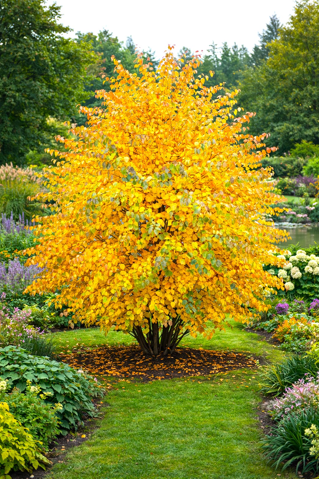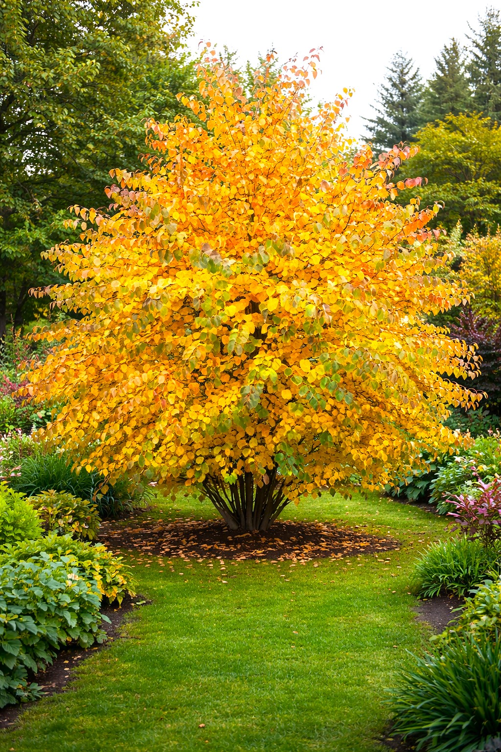 Pierwszych, ognistych barw jesieni oraz charakterystycznego zapachu możesz spodziewać się już w pierwszym sezonie po posadzeniu. Wraz z nadejściem chłodniejszych dni, korona Glowball eksploduje girlandami odcieni złota, pomarańczu i łososiowego różu. To właśnie wtedy liście wydzielają swój legendarny aromat karmelu i piernika, który wypełnia ogród podczas wilgotnych poranków. Jest to odmiana, która najlepiej smakuje zmysłom jesienią, stanowiąc najzdrowszą dla ducha, aromaterapeutyczną przekąskę prosto z domowej ekspozycji.