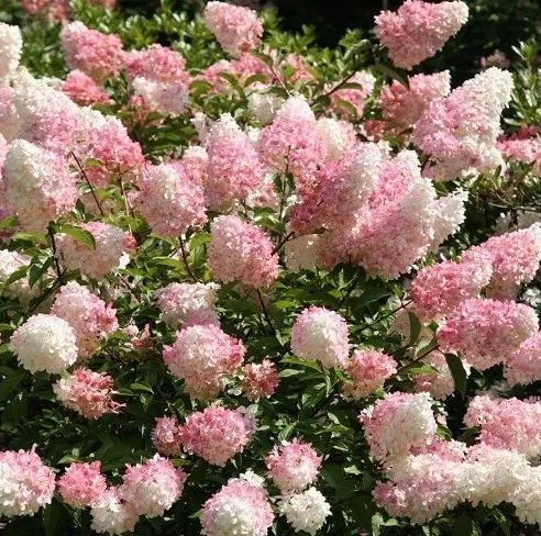 Hortensja bukietowa 'Vanille Fraise' to niezwykle dekoracyjna odmiana hortensji o spektakularnych, dwukolorowych kwiatostanach, które zmieniają barwę z kremowobiałej na intensywnie różową, przypominając sorbet waniliowo-truskawkowy.