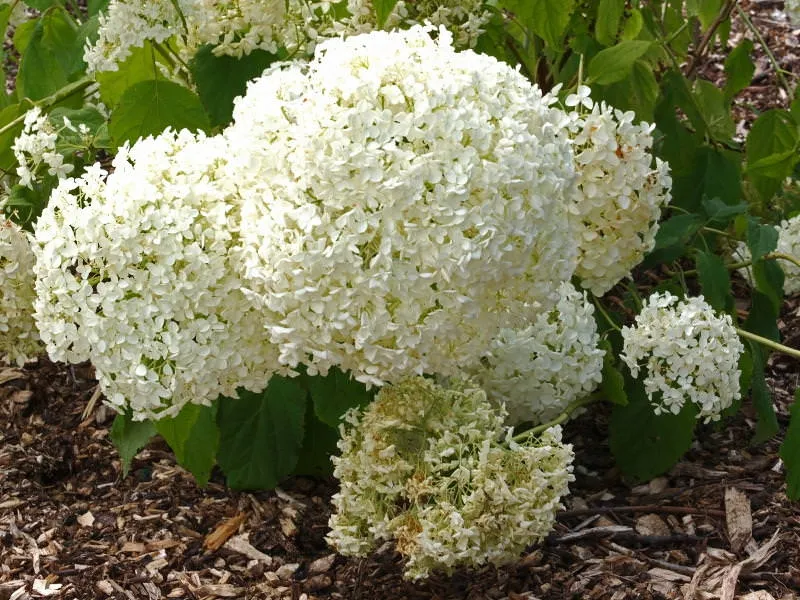 Kwitnienie: Kwitnie obficie od czerwca do września, tworząc gęste, kuliste kwiatostany o średnicy nawet 20-25 cm. Kwiaty długo utrzymują się na krzewie i pięknie prezentują się również po zasuszeniu.