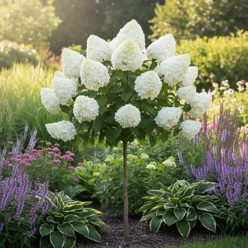 Hortensje bukietowe potrzebują gleby żyznej, próchniczej i stale umiarkowanie wilgotnej. Hercules uwielbia stanowiska słoneczne do półcienistych – słońce jest kluczowe, aby roślina miała energię do wytworzenia tak masywnych wiech. Jako forma pienna, drzewko wymaga stabilnego palika w pierwszych latach, aby pień pozostał idealnie prosty pod ciężarem korony. Zalecane pH gleby powinno być lekko kwaśne (pH 5,5-6,5). Odpowiednie nawożenie i dbanie o wilgotność podłoża zapewni Twojej roślinie optymalne warunki do bicia kolejnych rekordów wielkości kwiatów.