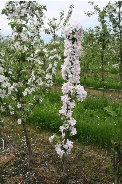 Jabłonie Kolumnowe rośną do wysokości 2-2,3m a ich odwód nie przekracza 25 cm, dlatego mogą być sadzone w odległości 90-120 cm od siebie na działkach, w małych ogródkach, tarasach jak i na balkony do sadzenia w donicach. Plonują już w drugim-trzecim roku po posadzeniu w zależności od odmiany jak i stworzonych warunków jakich roślina będzie rosła. Owocują obficie a wygląd drzewka w okresie kwitnienia stanowi bardzo atrakcyjny element ozdobny ogród czy tarasu
