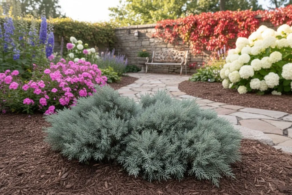 Pierwszych efektów dekoracyjnych w postaci zwartej "gwiazdy" możesz spodziewać się natychmiast po posadzeniu. Jałowiec ten przyrasta zaledwie o kilka centymetrów rocznie, co sprawia, że przez lata zachowuje swoją formę bez konieczności przycinania. Ze względu na gęstą strukturę, stanowi doskonałe tło dla roślin o kontrastujących kolorach. Jest to odmiana, która najlepiej wygląda sadzona w grupach, tworząc efektowne, niebieskie kobierce, które stanowią trwałą i niezwykle estetyczną bazę dla każdego domowego ogrodu.
