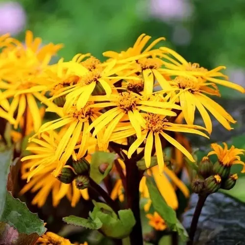 Języczka pomarańczowa 'Midnight Lady' to efektowna, wieloletnia bylina o kontrastowym wyglądzie. Jej ciemnopurpurowe liście stanowią doskonałe tło dla jaskrawo pomarańczowych, stokrotkowatych kwiatów, które przyciągają motyle i pszczoły.