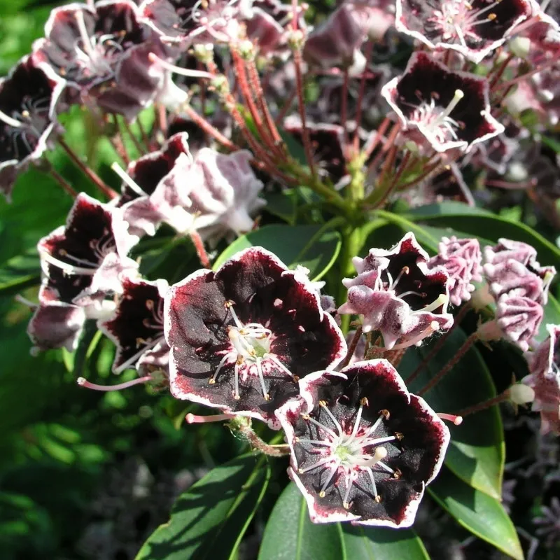 Kalmia 'Mitternacht' to zimozielony, wolno rosnący krzew o wyjątkowo ciemnych, purpurowo-brązowych kwiatach z jasnym środkiem. Jest mrozoodporna i łatwa w uprawie, dzięki czemu świetnie sprawdzi się w ogrodach przydomowych.