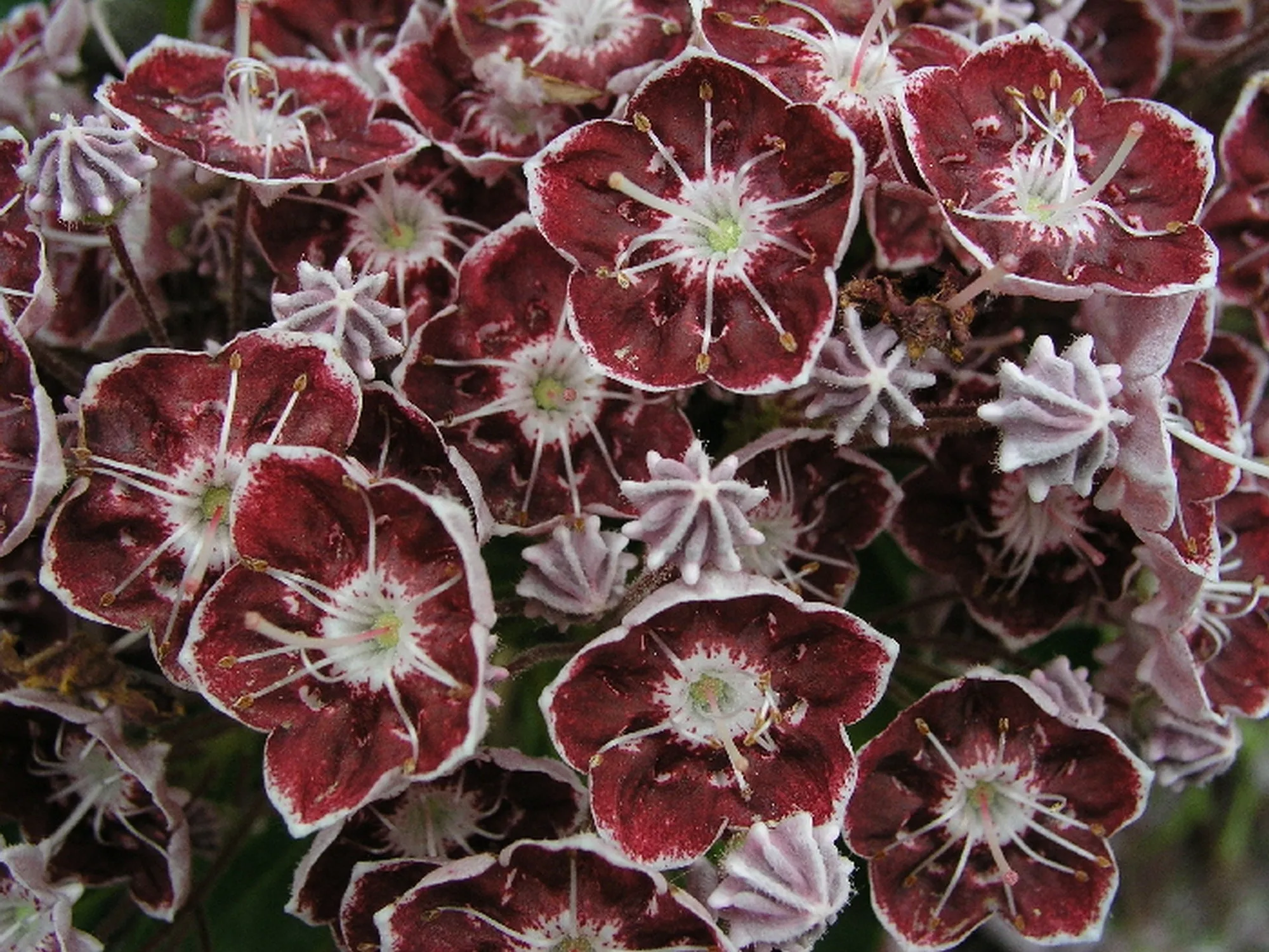 Kalmia 'Tad' to zimozielony, kompaktowy krzew ozdobny o wyjątkowych kwiatach w odcieniach czerwieni i różu. Jest mrozoodporna, wolnorosnąca i łatwa w uprawie, dzięki czemu idealnie nadaje się do ogrodów przydomowych oraz na rabaty.