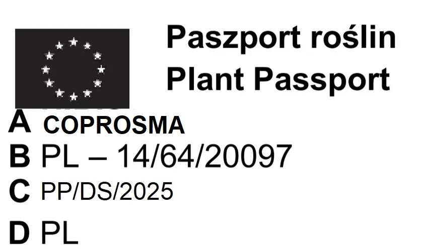 Towar jest perfekcyjnie pakowany, z korzeniami umieszczonymi w wilgotnej ziemi bez donicy, eliminując ryzyko uszkodzenia podczas transportu. Rośliny są zabezpieczone w worku foliowym, a całość jest starannie owinięta specjalną folią, aby dotarła do Ciebie w nienaruszonym stanie. Koprosma Eclipse to purpurowy skarb w Twoim otoczeniu i źródło unikalnych wrażeń estetycznych, które zachwycą każdego miłośnika nowoczesnej florystyki.
