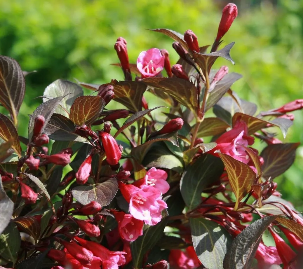 Krzewuszka (Weigela) na pniu z bordowym liściem to niezwykle dekoracyjna odmiana, która zachwyca bordowo-zielonym ulistnieniem i efektownym kwitnieniem. Osadzona na prostym pniu, tworzy elegancką koronę z ciemnych, bordowo-purpurowych-zielonych liści, które pięknie kontrastują z różowymi lub różowo-białymi, dzwonkowatymi kwiatami. Docelowo osiąga około 2 metrów wysokości, nadając ogrodowi nutę nowoczesnej finezji i lekkości.