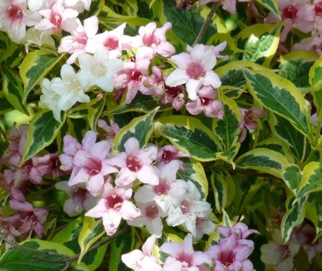 Kwitnienie: Kwitnie obficie w maju i czerwcu, a powtórne, mniej intensywne kwitnienie może wystąpić późnym latem i wczesną jesienią. Kwiaty pięknie kontrastują z dwubarwnym ulistnieniem, tworząc spektakularny efekt wizualny.