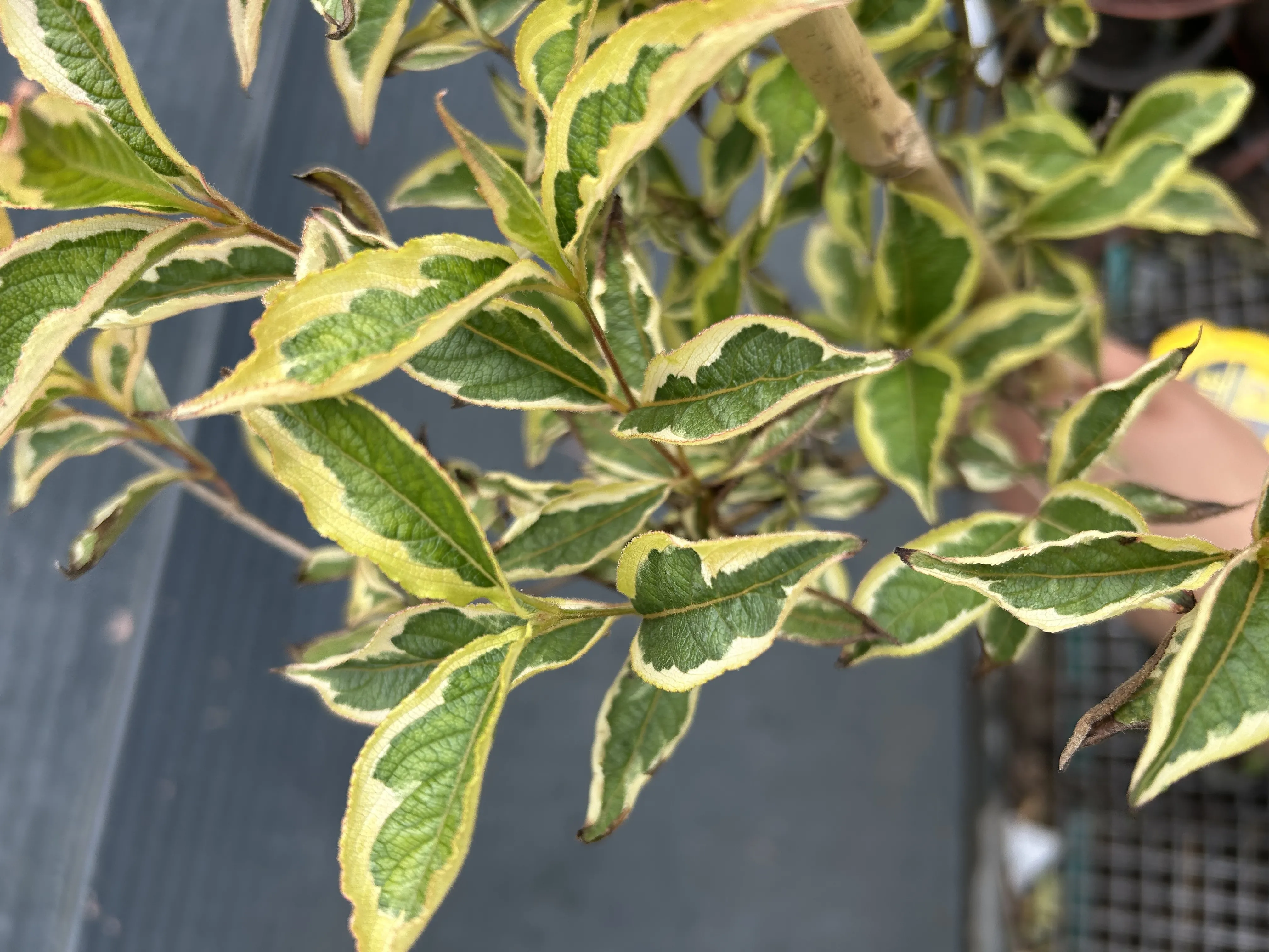 KRZEWUSZKA WEIGELA NA PNIU – DWUKOLOROWY LIŚĆ Z GOŁYM KORZENIEM