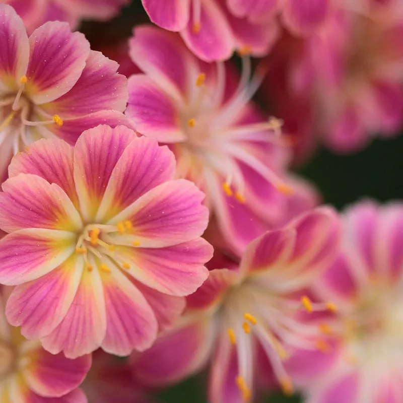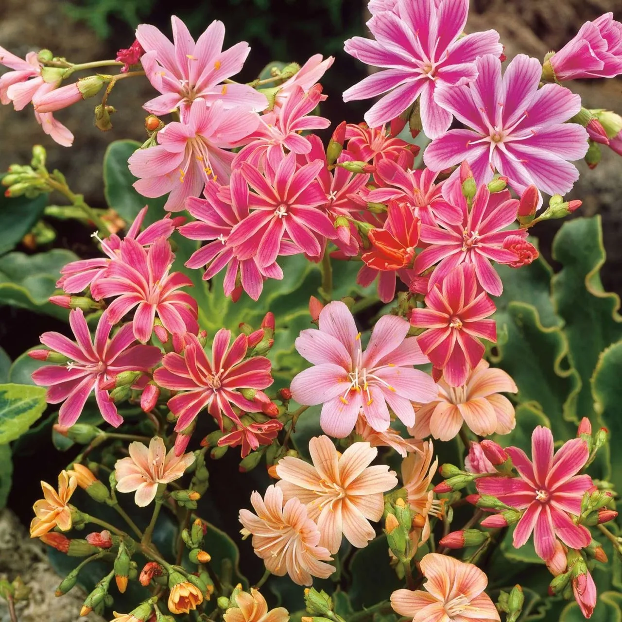 Lewizja 'Regenbogen' to kompaktowa, wieloletnia bylina o wyjątkowo dekoracyjnych kwiatach w odcieniach różu, pomarańczu, żółci i bieli, które tworzą piękne, wielobarwne kompozycje. Jest idealna do skalniaków, donic i rabat, gdzie dodaje koloru i elegancji.