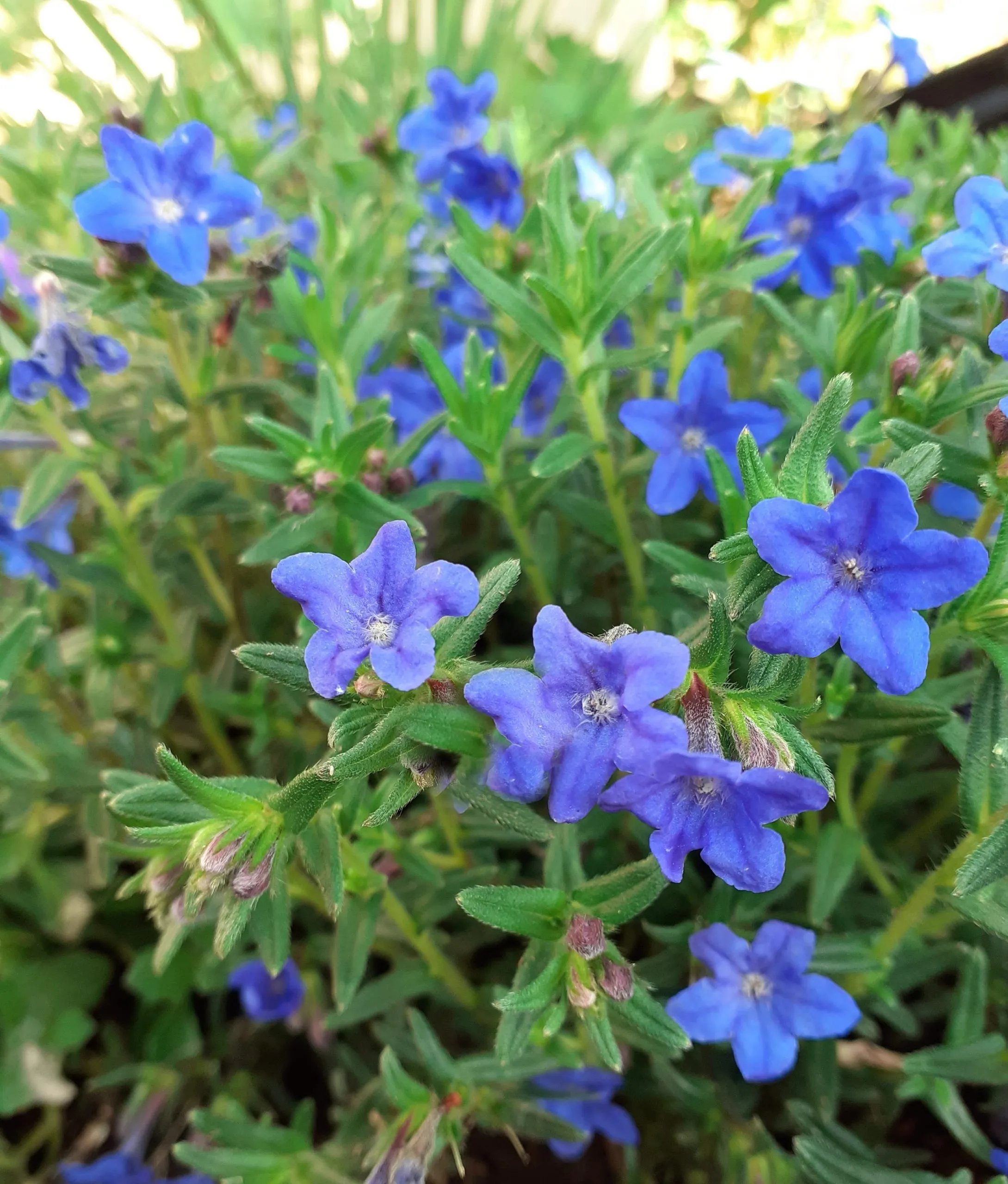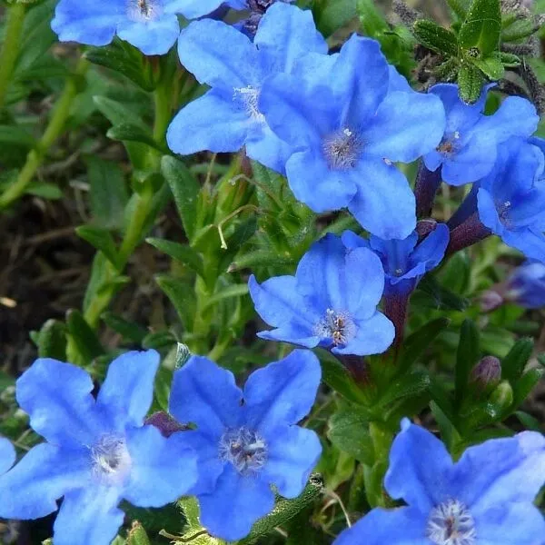 Litodora 'Heavenly Blue' to niska, zimozielona krzewinka o intensywnie niebieskich kwiatach, które wyróżniają się na tle ciemnozielonych, wąskich liści. Jest ceniona za długie kwitnienie i zwartą, poduszkowatą formę.