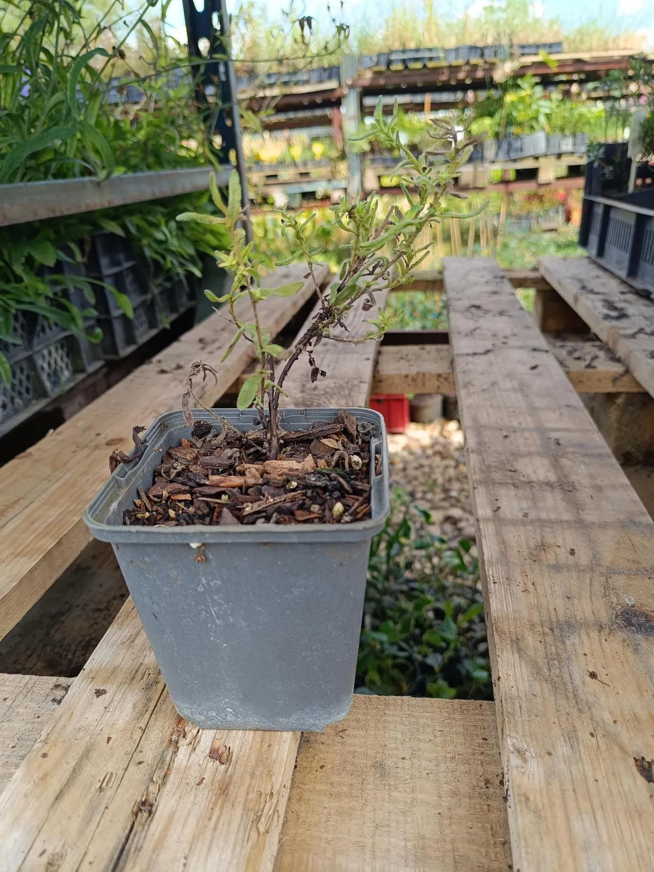 Rośliny kupowane w okresie późnowiosennym aż do czasu jesieni mają liście które podczas przewozu najczęściej więdną ale proszę się tym nie przejmować - to jest naturalny system obronny rośliny żeby całość nie uschła, dlatego proszę oberwać uschnięte liście i mocno podlewać aż roślina wypuści nowe.
