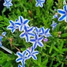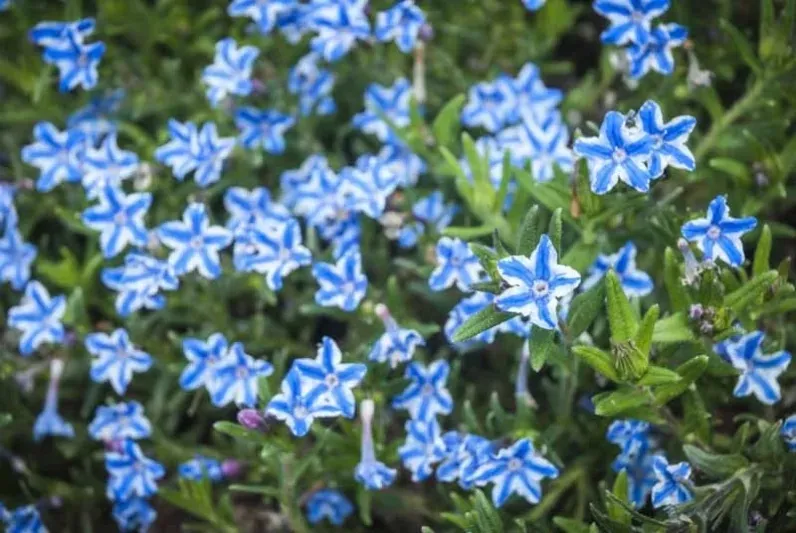 Litodora 'Star' to niska, zimozielona krzewinka o zwartym pokroju i pięknych intensywnie niebieskich z białą lamówką kwiatach, które pojawiają się wiosną i latem. Jest idealna do sadzenia na skalniakach, rabatach oraz w donicach.