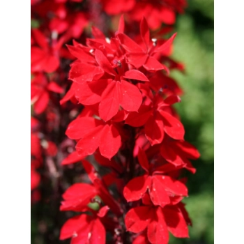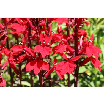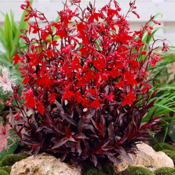 Lobelia 'Queen Victoria' to efektowna, wieloletnia bylina o intensywnie czerwonych kwiatach i ciemnoczerwonych liściach, która dodaje ogrodowi wyrazistego koloru.