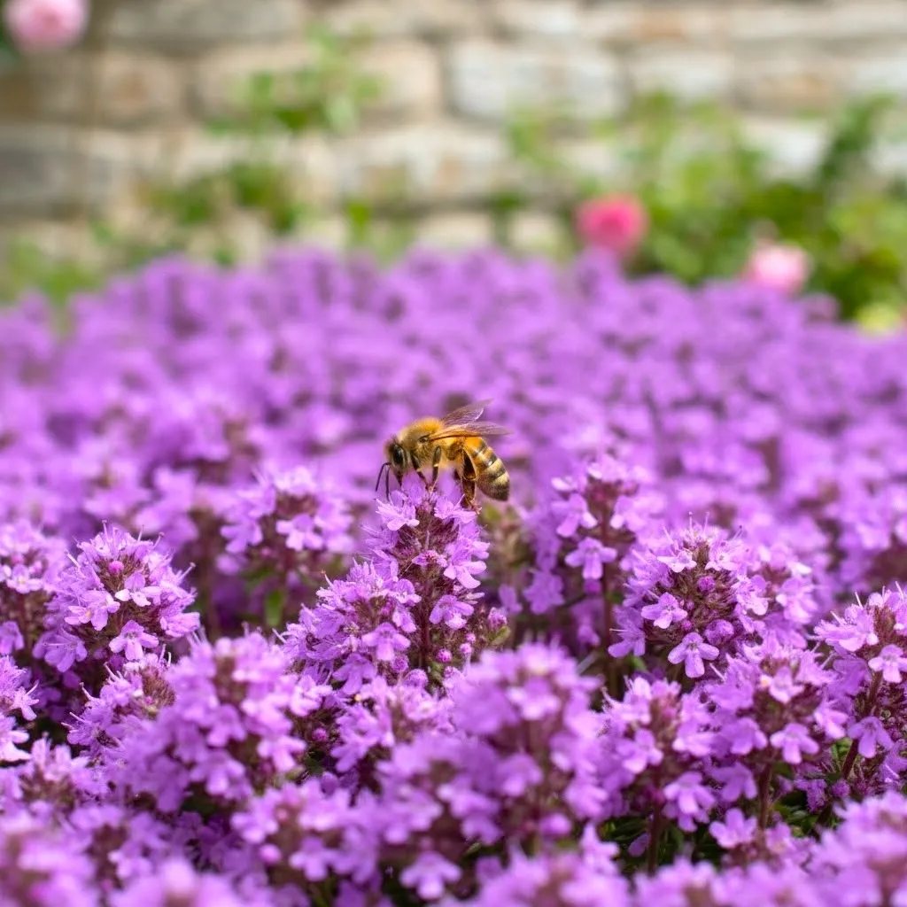Pierwszych, purpurowych kwiatów możesz spodziewać się już w pierwszym roku po posadzeniu. Macierzanki te kwitną niezwykle obficie, tworząc żywe plamy koloru, które przyciągają rzesze pożytecznych owadów i pszczół. Kwiaty najlepiej podziwiać w pełnym słońcu, kiedy ich barwa jest najmocniejsza, a olejek eteryczny uwalniany z liści najintensywniej pachnie. Jest to doskonała odmiana miododajna, która przy odpowiednich warunkach w suchym miejscu może pozostać dekoracyjna nawet po przekwitnięciu, zachowując swój zwarty pokrój.