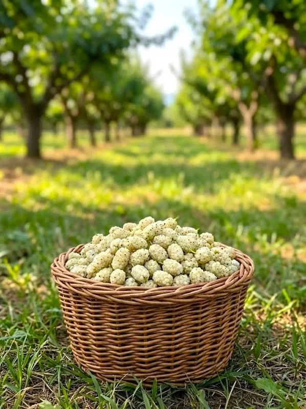 Morwa Biała to drzewo o szybkim wzroście, które tworzy gęstą, kulistą i bardzo dekoracyjną koronę. Owoce są niezwykle atrakcyjne – osiągają około 2-3 cm długości, są miękkie, soczyste i charakteryzują się bardzo słodkim, mdławym posmakiem bez wyczuwalnej kwasowości. Choć ich nazwa sugeruje kolor biały, mogą przybierać barwy od kremowej po lekko żółtawą. Są skarbnicą witamin i minerałów, idealnie nadając się do bezpośredniego spożycia prosto z drzewa oraz na lecznicze nalewki i susze. Dojrzałość zbiorczą osiągają sukcesywnie od końca czerwca do sierpnia.