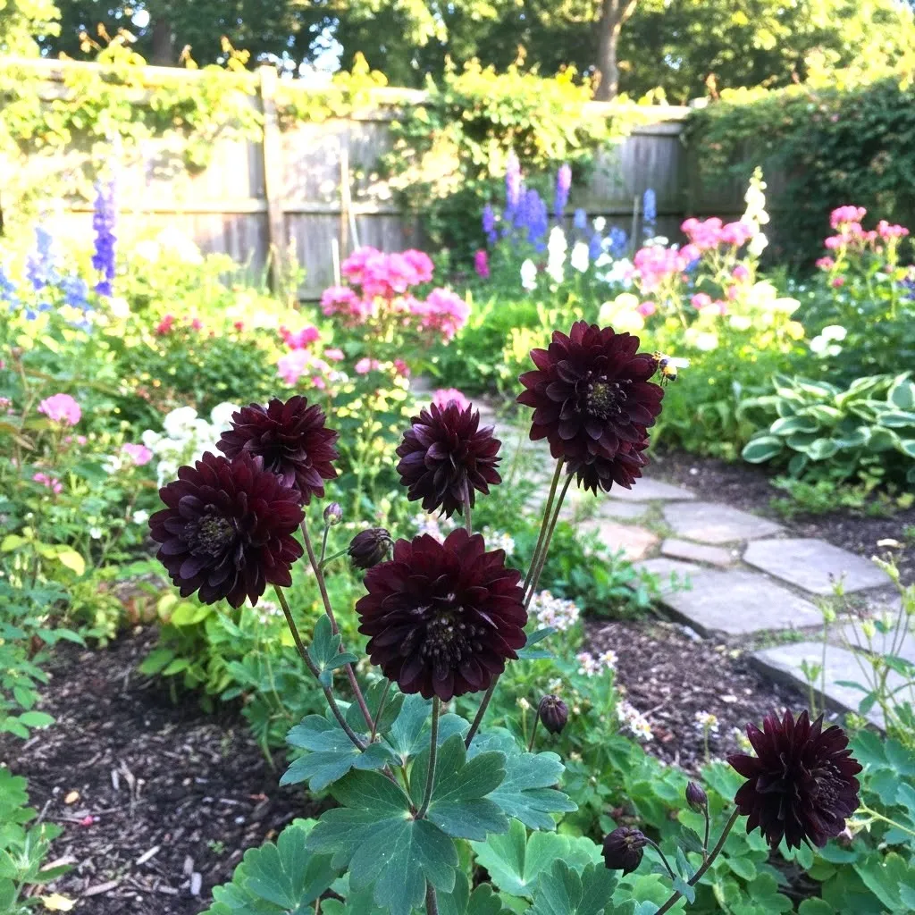 Pierwszych, spektakularnych kwiatów możesz spodziewać się już w najbliższym sezonie po posadzeniu. Orliki te kwitną bardzo obficie, obsypując pędy mnóstwem ciemnych "pomponików", które dumnie wznoszą się nad liśćmi. Kwiaty najlepiej podziwiać w delikatnym półcieniu, gdzie ich barwa staje się jeszcze głębsza i bardziej nasycona. Jest to doskonała odmiana ozdobna, która przy odpowiednim usuwaniu przekwitłych kwiatostanów zachowuje estetyczny wygląd i może zdobić ogród przez wiele tygodni.