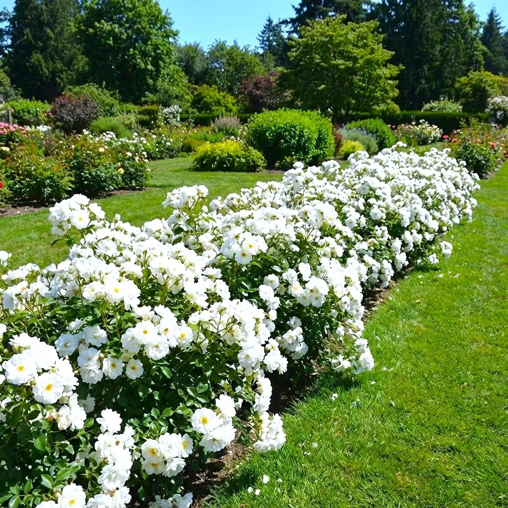 Róże okrywowe najlepiej czują się na glebach przepuszczalnych, żyznych i umiarkowanie wilgotnych. Odmiana biała uwielbia stanowiska słoneczne i przewiewne – słońce jest kluczowe, aby kwiaty zachowały swoją nieskazitelną biel i aby krzewy rozwijały się równomiernie. Młode sadzonki warto ściółkować kora, co pozwala utrzymać wilgoć i ograniczyć rozwój chwastów. Zalecane pH gleby powinno oscylować w granicach 6,0-7,0. Odpowiednie przygotowanie podłoża i wiosenne nawożenie zapewni roślinie idealny start i dynamiczny rozwój systemu korzeniowego.