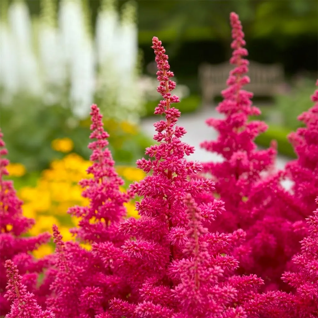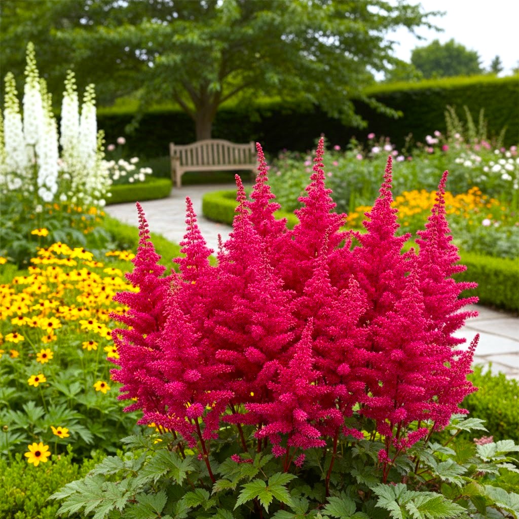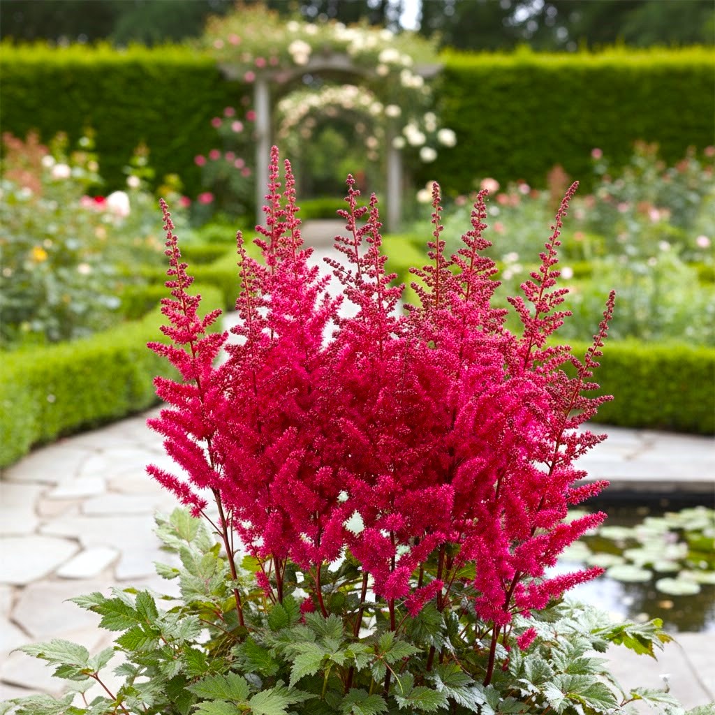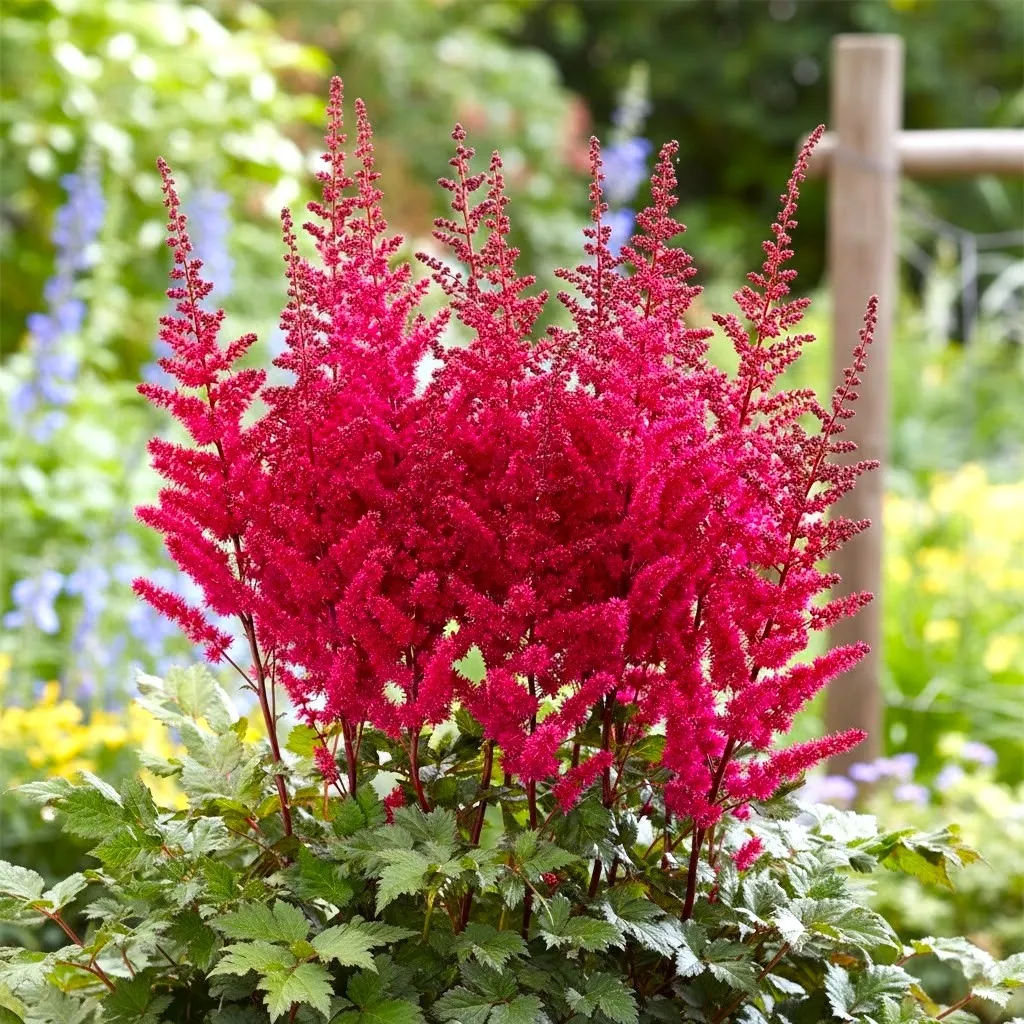 Pierwszych, ognistych kwiatostanów możesz spodziewać się już w 1-2 roku po posadzeniu. Roślina kwitnie regularnie i bardzo obficie, wznosząc ponad liście girlandy puszystych wiech o unikalnej, gęstej fakturze. Ze względu na swoją strukturę, kwiatostany zachowują dekoracyjność nawet po przekwitnięciu, zdobiąc ogród swoją formą aż do jesieni. Jest to odmiana, która najlepiej smakuje wizualnie sadzona w grupach, stanowiąc najzdrowszą i najbardziej wyrazistą przekąskę dla oka prosto z domowej rabaty.