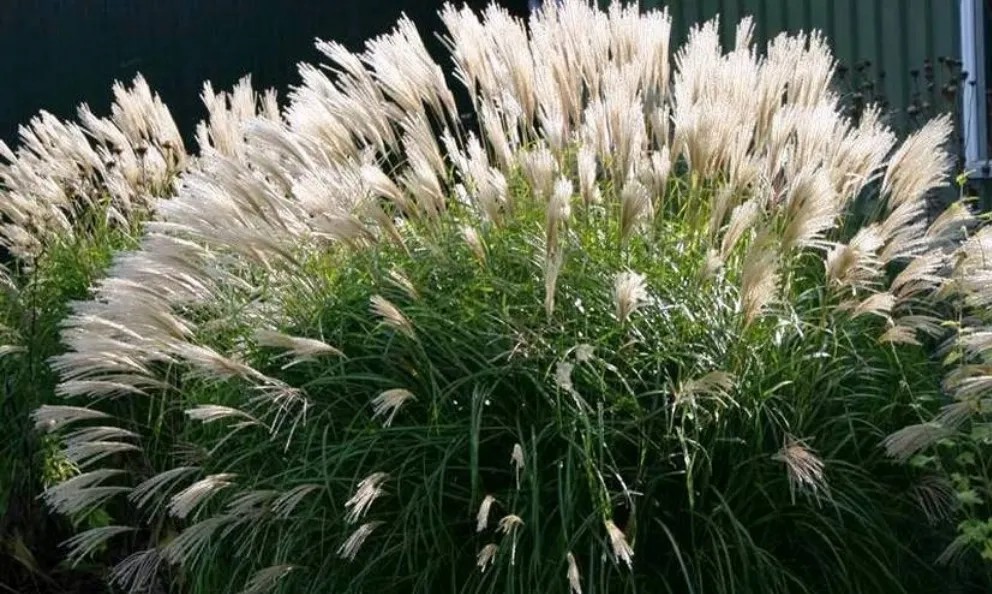 Miskant Silberspinne rośnie umiarkowanie silnie, tworząc bardzo zgrabną, zwartą kępę o wąskich, fontannowo wygiętych liściach. Liście mają głęboki, zielony kolor z wyraźnym, białym nerwem biegnącym przez środek, co nadaje roślinie srebrzystego blasku jeszcze przed kwitnieniem. Największą ozdobą są liczne, pionowe kwiatostany, które początkowo mają lekko czerwonawy odcień, by w pełnym rozkwicie zmienić się w puszyste, srebrzysto-białe pióropusze. Trawa ta zachowuje swój smukły pokrój i nie rozkłada się na boki, co sprawia, że wygląda nienagannie przez cały sezon.
