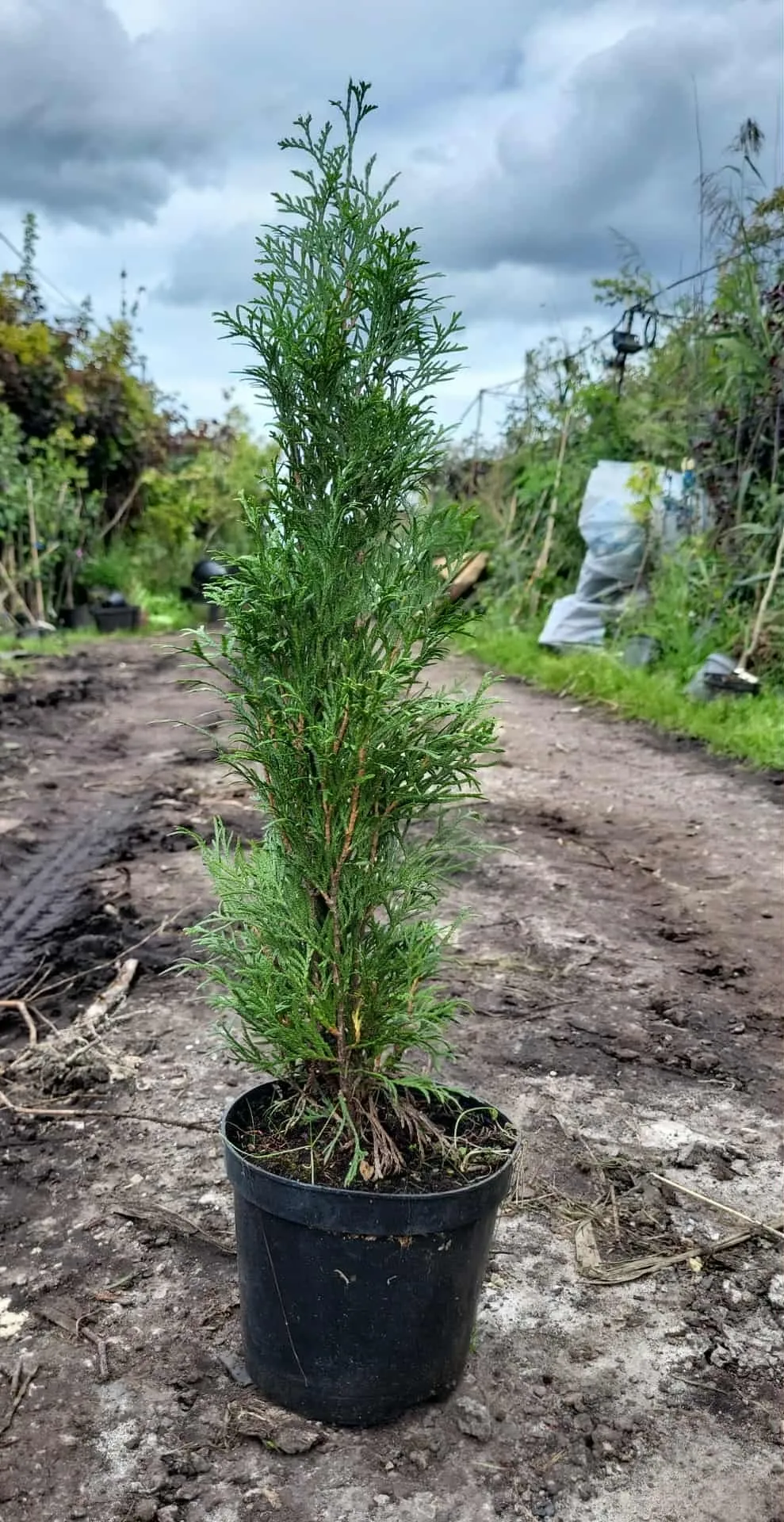 Tuja sprzedawana jest w donicy, wysokość całkowita sadzonki razem z donicą 50 - 70 cm