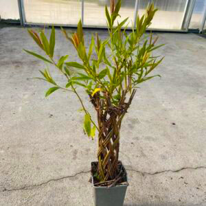 Wierzba pleciona jest zrobiona ręcznie z ponad 40 sztuk wierzby wiciowej co stanowi bajeczny wygląd praktycznie przez cały rok, wczesną wiosną obsypuje się pięknymi urokliwymi kotkami, a w późniejszym czasie tworzy soczyście zieloną koronkę, która lubi cięcia przez co możemy w ogrodzie lub tarasie stworzyć bajeczne kształty.