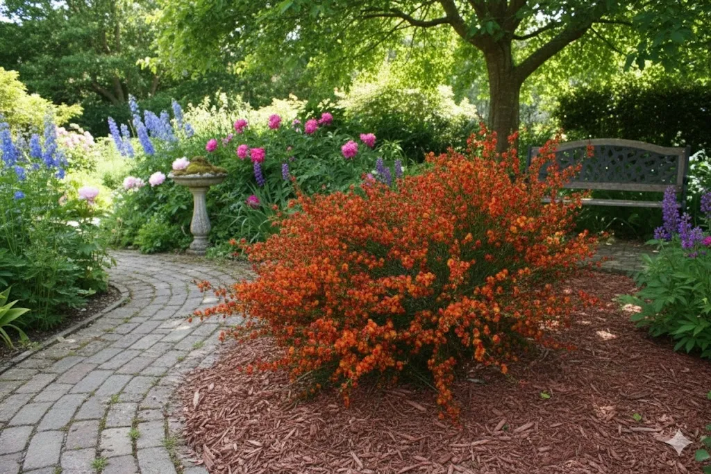 Pierwszych, ognistych kwiatów możesz spodziewać się już w 1-2 roku po posadzeniu. Krzew kwitnie regularnie i niezwykle obficie, obsypując pionowe pędy girlandami dwubarwnych kwiatostanów. Ze względu na miododajność, kwiaty przyciągają rzesze pożytecznych owadów, co pozwala zachować bioróżnorodność i życie w Twoim ogrodzie. Jest to odmiana, która najlepiej smakuje wizualnie w pełnym słońcu, stanowiąc najbardziej widowiskową i najzdrowszą ozdobę prosto z domowej kolekcji.