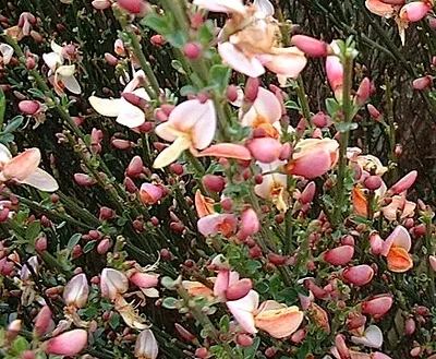 Żarnowiec 'Zeelandia' kwitnie od maja do czerwca, tworząc niezwykle ozdobne kwiaty, które wyróżniają się ciepłymi tonami żółci i pomarańczu.